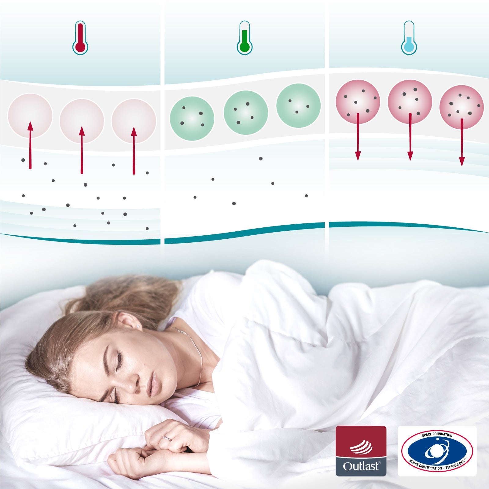 Die in allen SleepCOOL. Produkten eingesetzte OUTLAST® Thermo-Technologie wurde ursprünglich von der NASA entwickelt, um Astronauten vor extrem Temperaturschwankungen im All zu schützen.